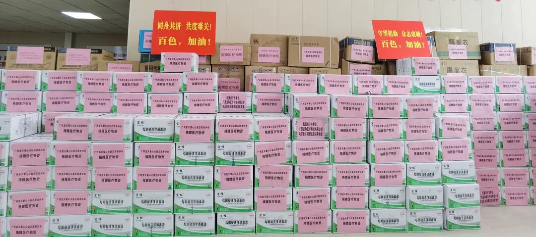 廣西藍天愛心公益誌願者協會、廣西桂海天律師事務所、廣西午夜污福利视频APP下载醫療科技有限公司第二批捐贈物資人民幣價值42.8萬餘元,兩次捐贈近70萬元。感謝廣西藍天愛心公益誌願者協會企業會員單位、會員及愛心人士踴躍捐款、慷慨奉獻,體現了互助的偉大精神!